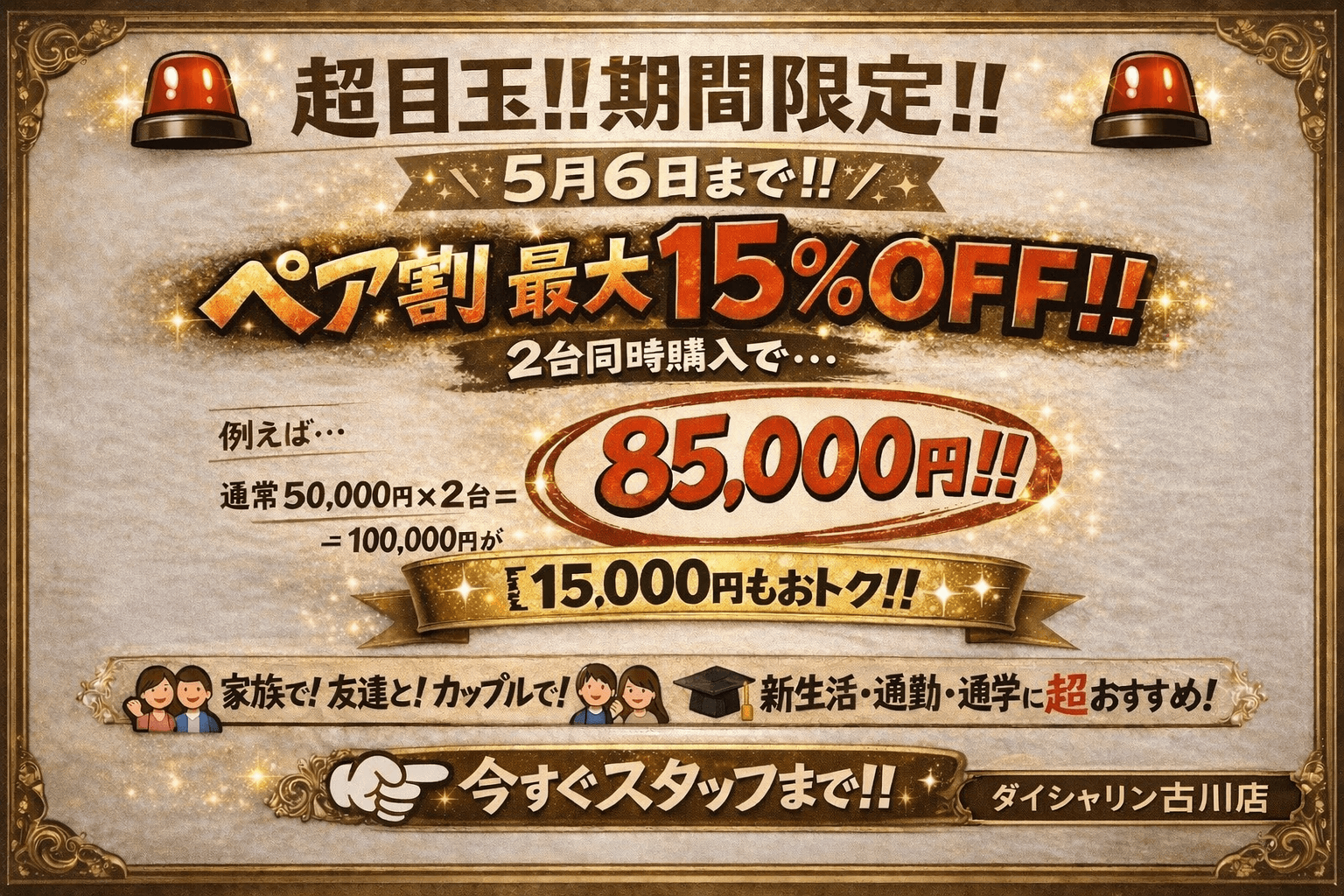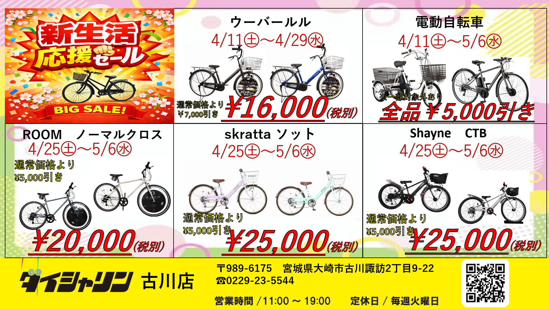 電動自転車も”全品¥5,000”引きとなります🔥