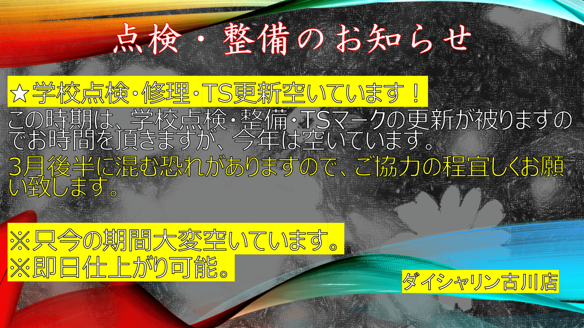 毎年この時期は、1週間等お預かりする場合が多いですが今年はとても空いています❕
