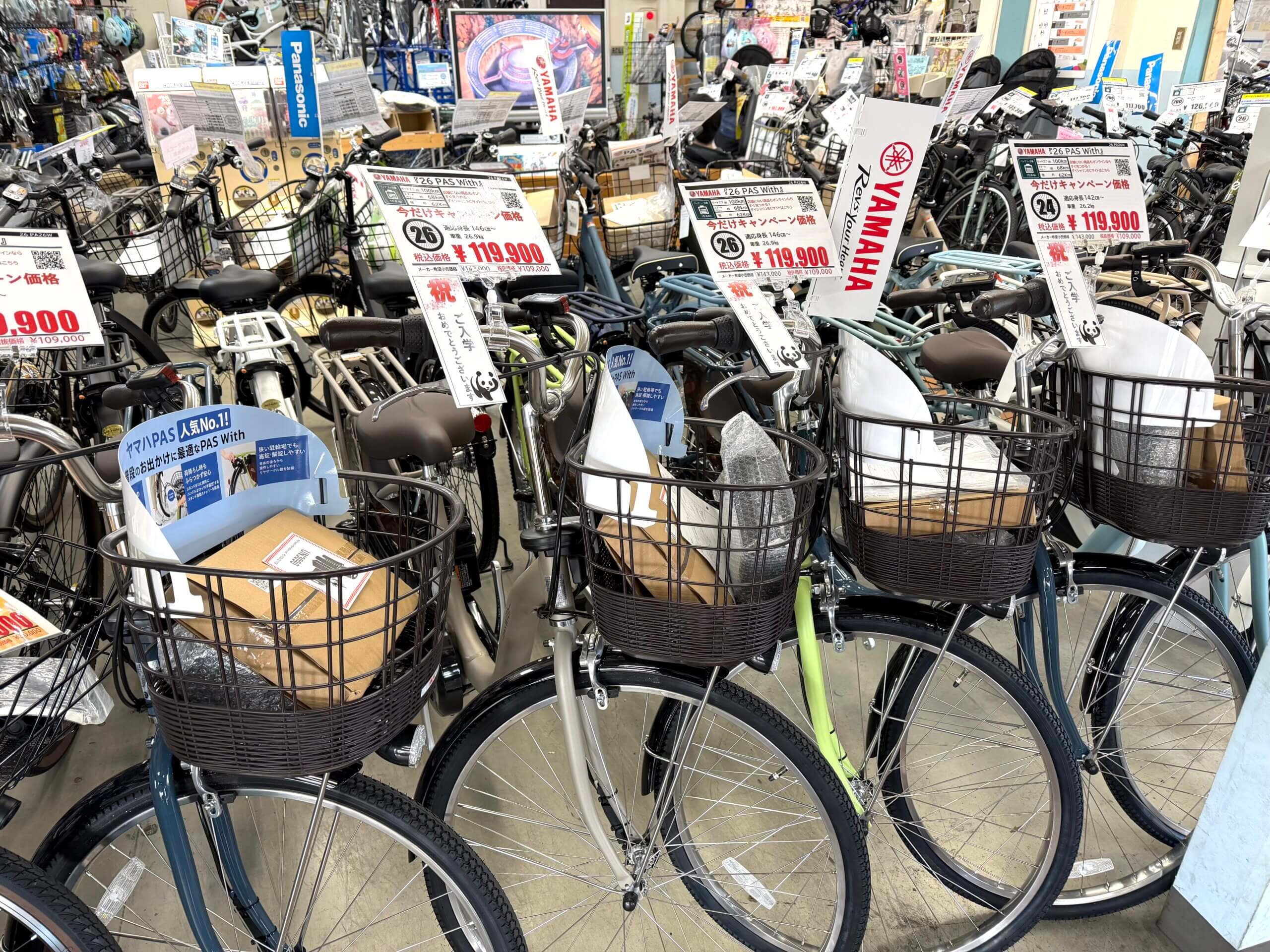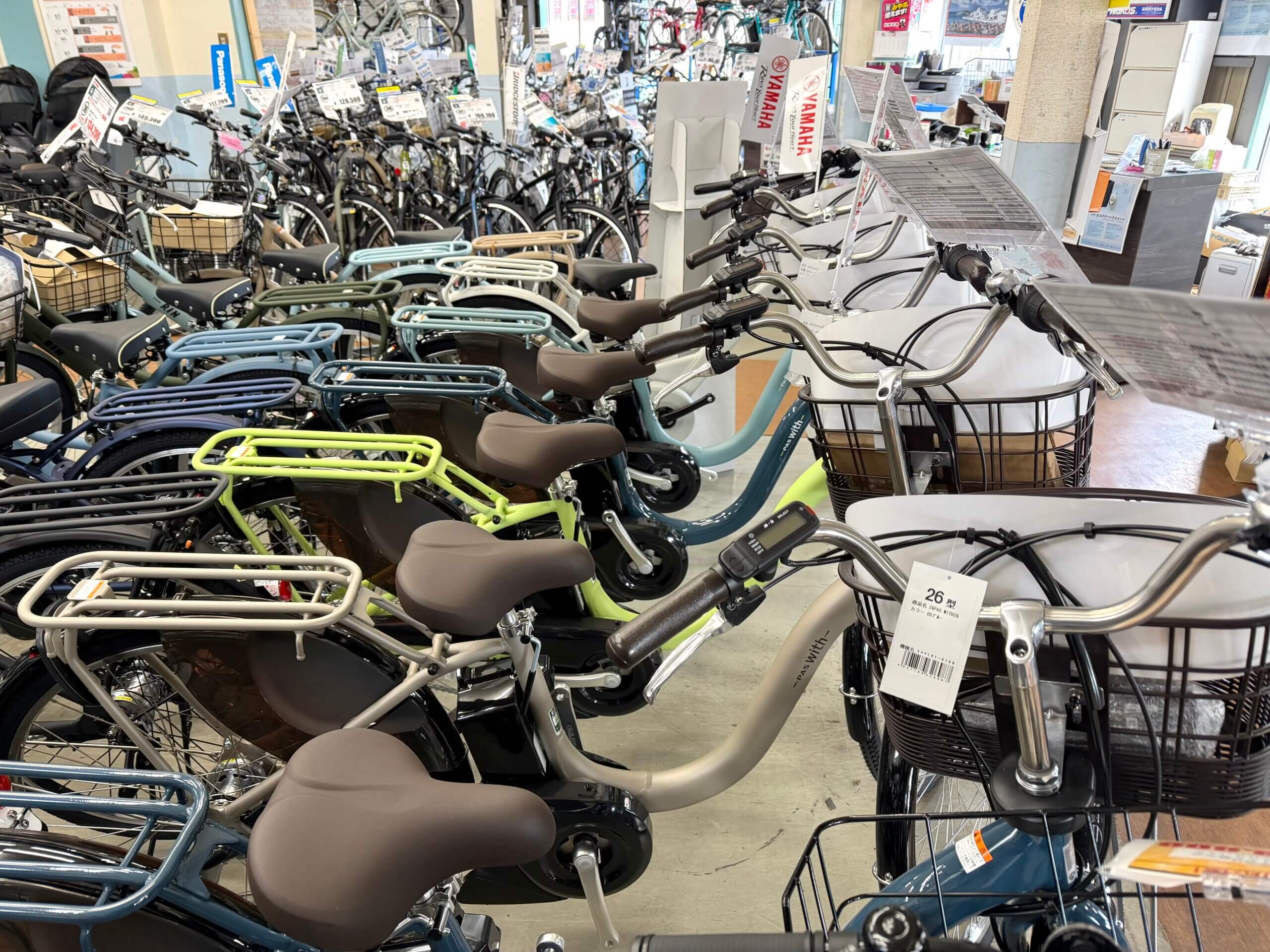 YAMAHA PAS With通学で大人気の電動自転車カラー豊富に展示中!!😊