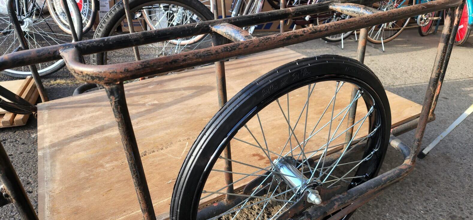 リヤカーノーパンクタイヤに変更❕