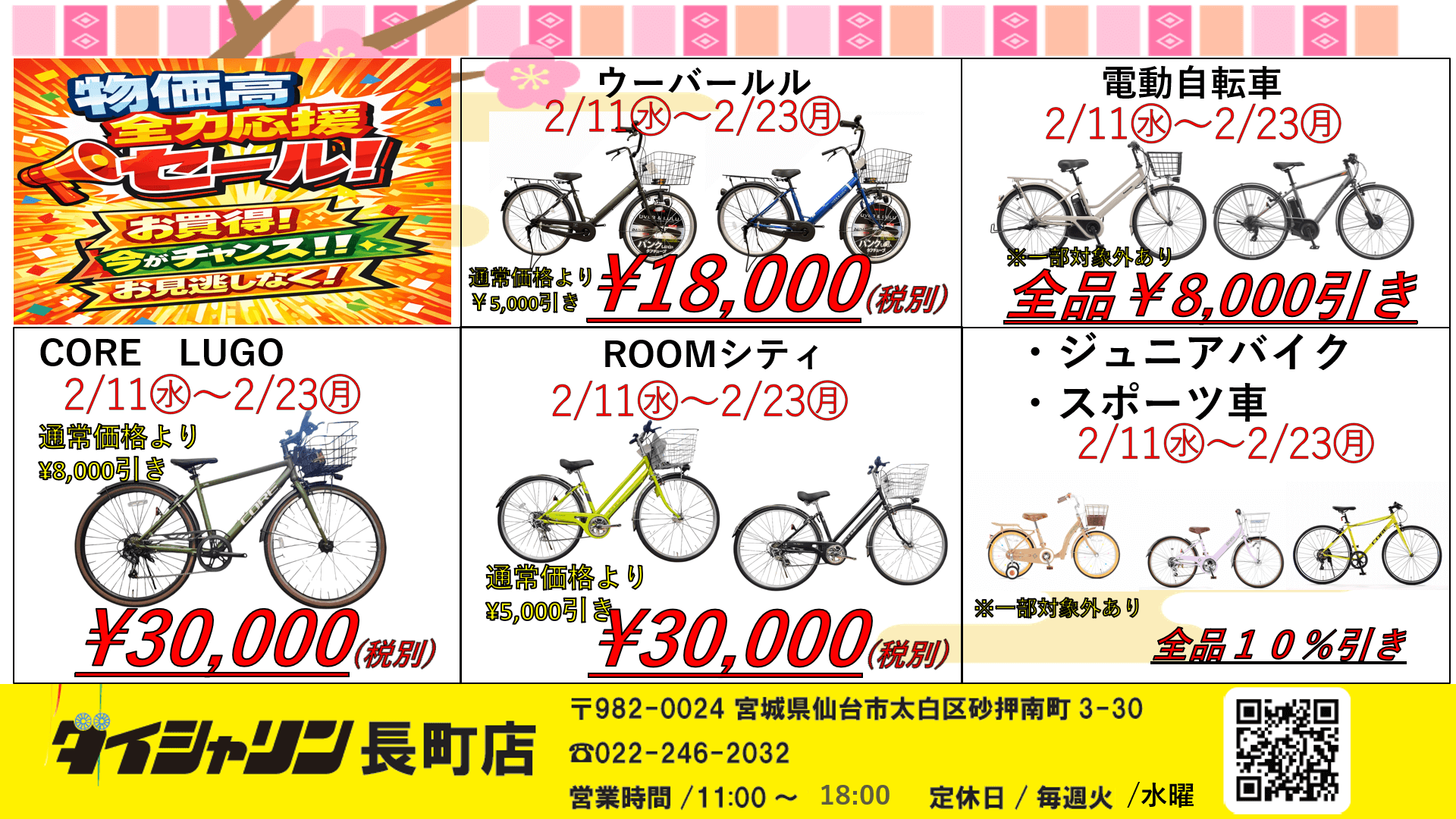 #ダイシャリン長町店#仙台市#太白区#長町#青葉区#自転車店#自転車#通学用自転車#通勤用自転車#電動自転車#子供車#ロードバイク#クロスバイク#マウンテンバイク