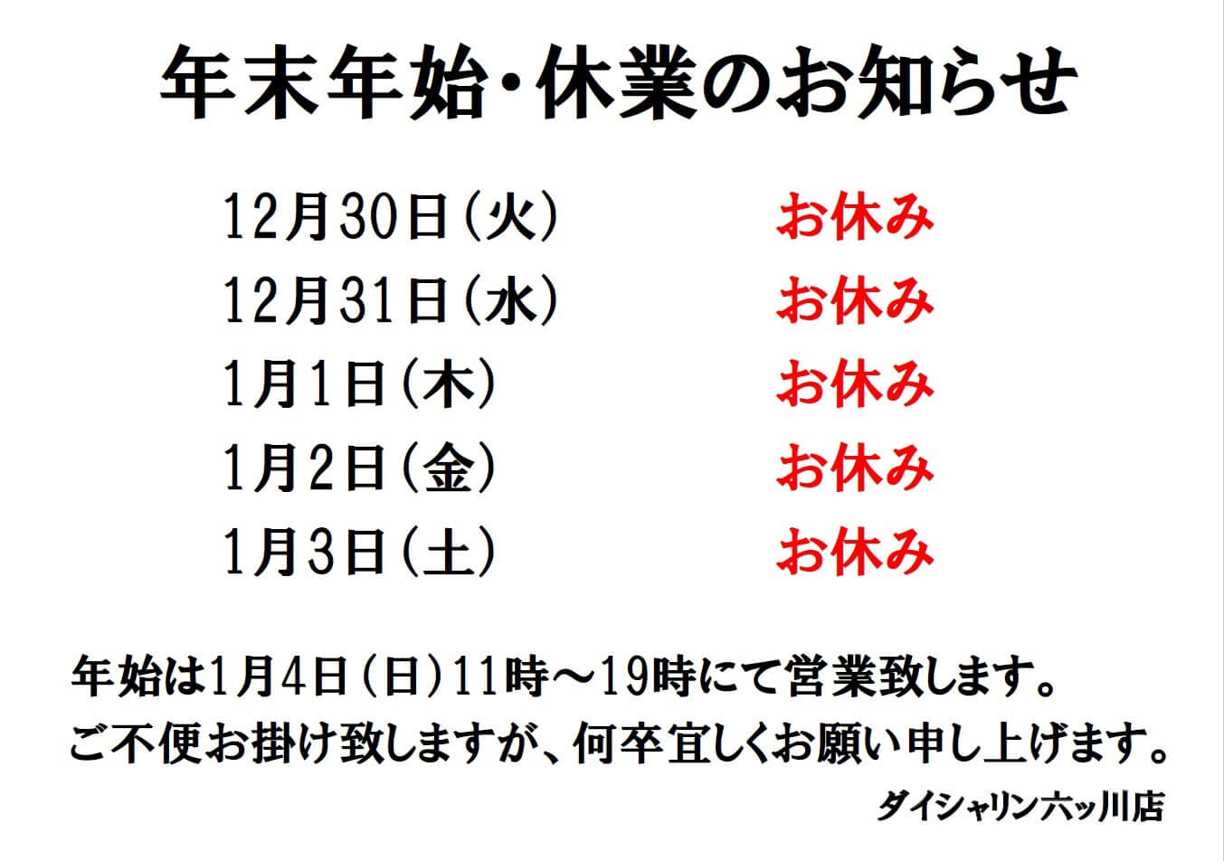年末年始(12/30~1/3・休業) ~六ッ川店~