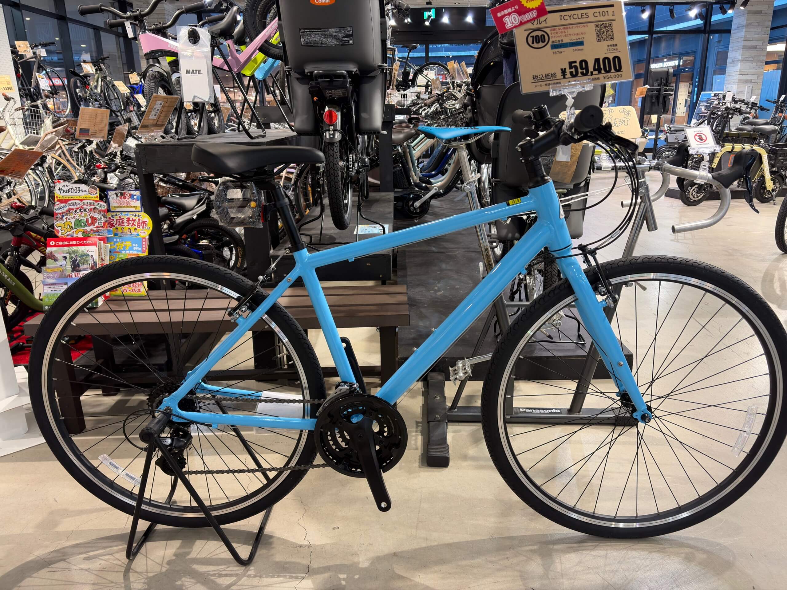 型落ち品になります。現行モデルには付いてこないライトが付属しているのと、サドルも現行に比べやや厚めなのでGOODな1台です。