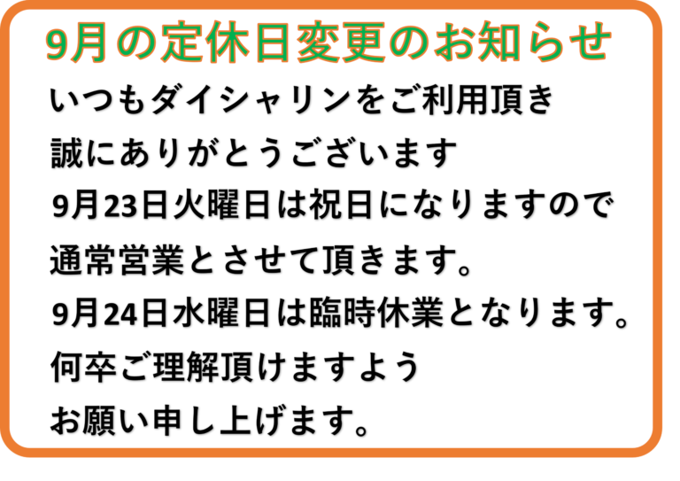9月23日秋分の日営業致します